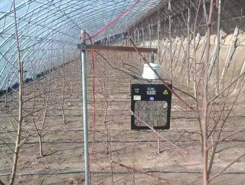 生长灯照射区域为一定厚度的扇形主体,保持该主体空间覆盖植物生长点层:当植物长高时,适当升高补光灯位置。补光灯的高度高于植物生长点,通过调整支架横臂高度,调整到植物生长点。